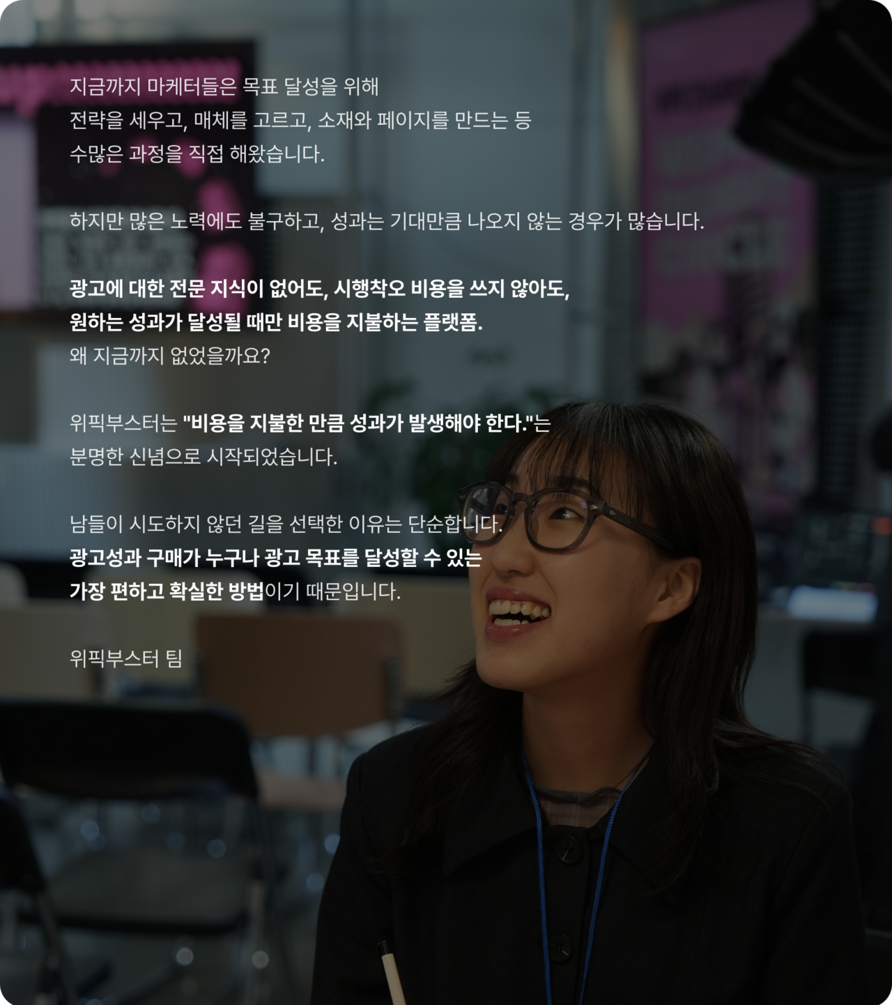 광고는 누구나 하지만, 위픽부스터는 성과를 만듭니다.