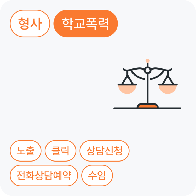 학교폭력 사건 의뢰에 관심이 있는 고객을 노출부터 수임까지 단계별로 확보할 수 있어요.