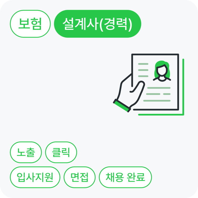 설계사 채용에 관심이 있는 지원자를 노출부터 채용까지 단계별로 확보할 수 있어요.