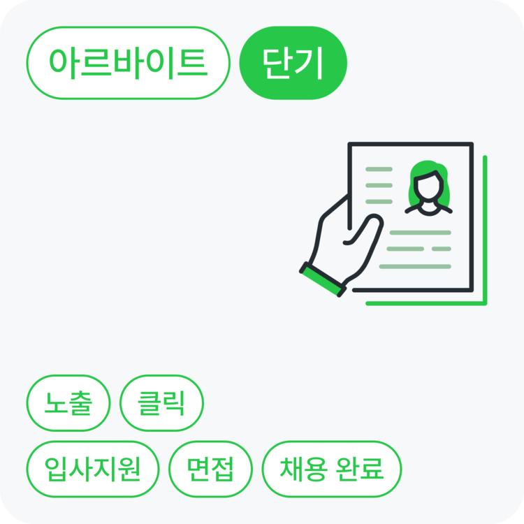 아르바이트 채용에 관심이 있는 지원자를 노출부터 채용까지 단계별로 확보할 수 있어요.