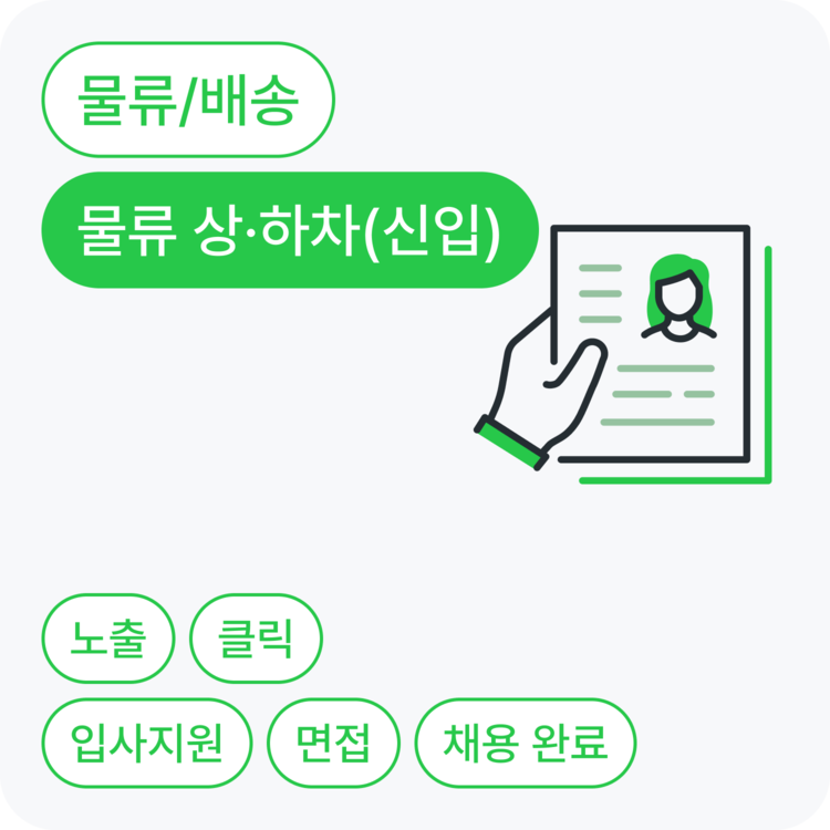 상·하차 채용에 관심이 있는 지원자를 노출부터 채용까지 단계별로 확보할 수 있어요.