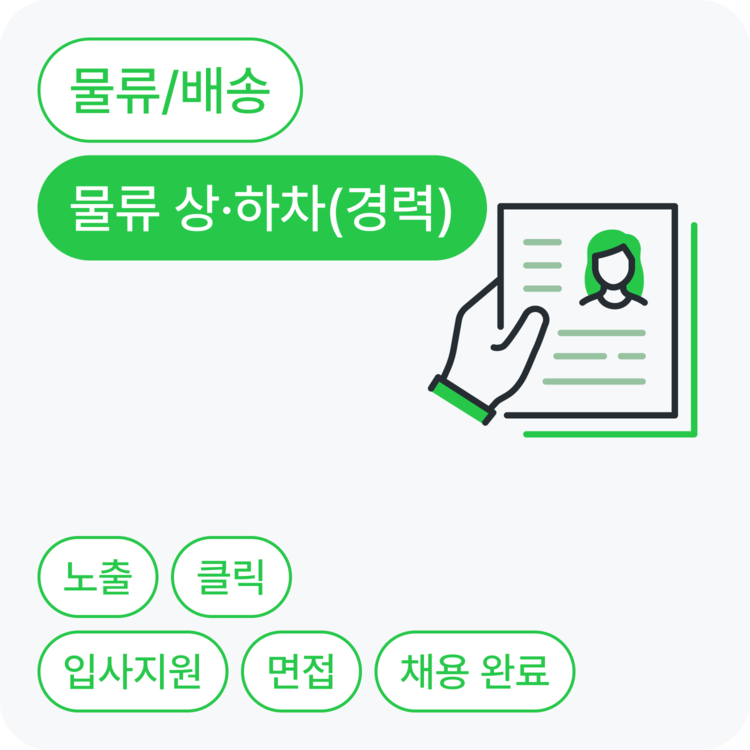 상·하차 채용에 관심이 있는 지원자를 노출부터 채용까지 단계별로 확보할 수 있어요.