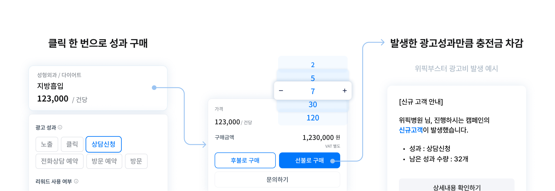 필요한 만큼만 선택해서, 성과가 발생했을 때만 비용을 지불하시면 돼요.